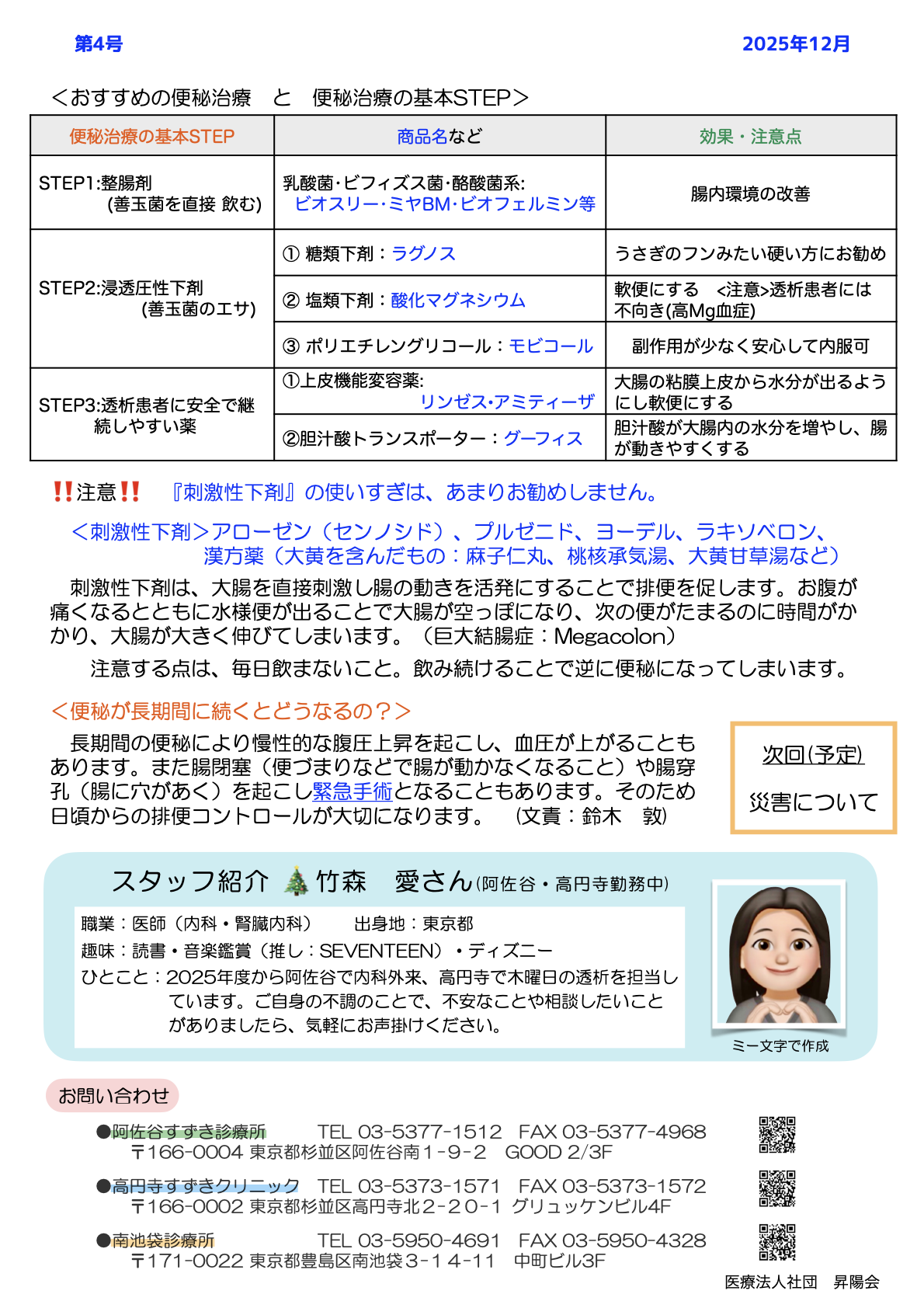 昇陽会のニュースレターの第4号が創刊されました!今回は透析患者さんの便秘についてです。ぜひご覧ください!